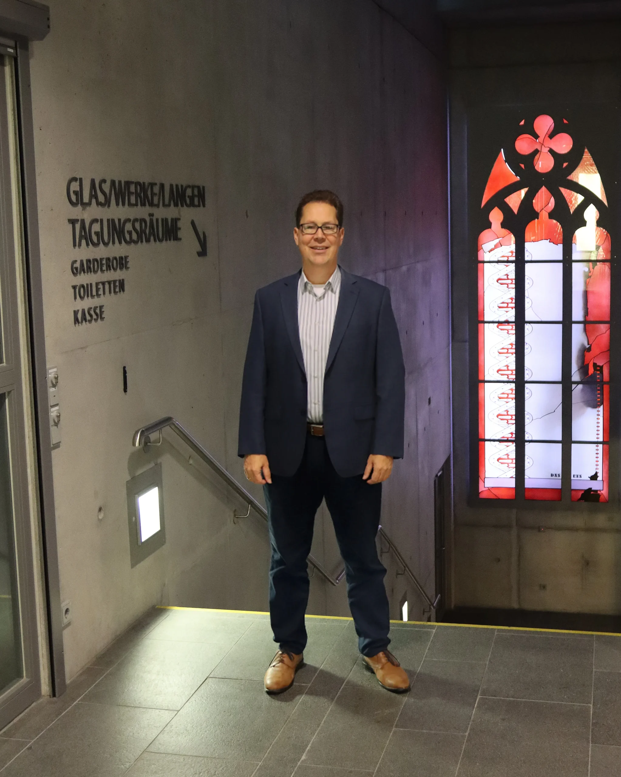 Ich biete monatliche Führungen an, meist samstagnachmittags, und zusätzlich Termine für Gruppen, oft mit Fokus auf Religion, Theologie, Kunst oder Architektur. Besucher*innen kommen aus ganz Europa, manchmal sogar von weiter her. Viele kennen Schreiter, der Fenster in vielen Kirchen und Synagogen in ganz Deutschland und weltweit gestaltet hat, und möchten mehr über sein Werk erfahren.
