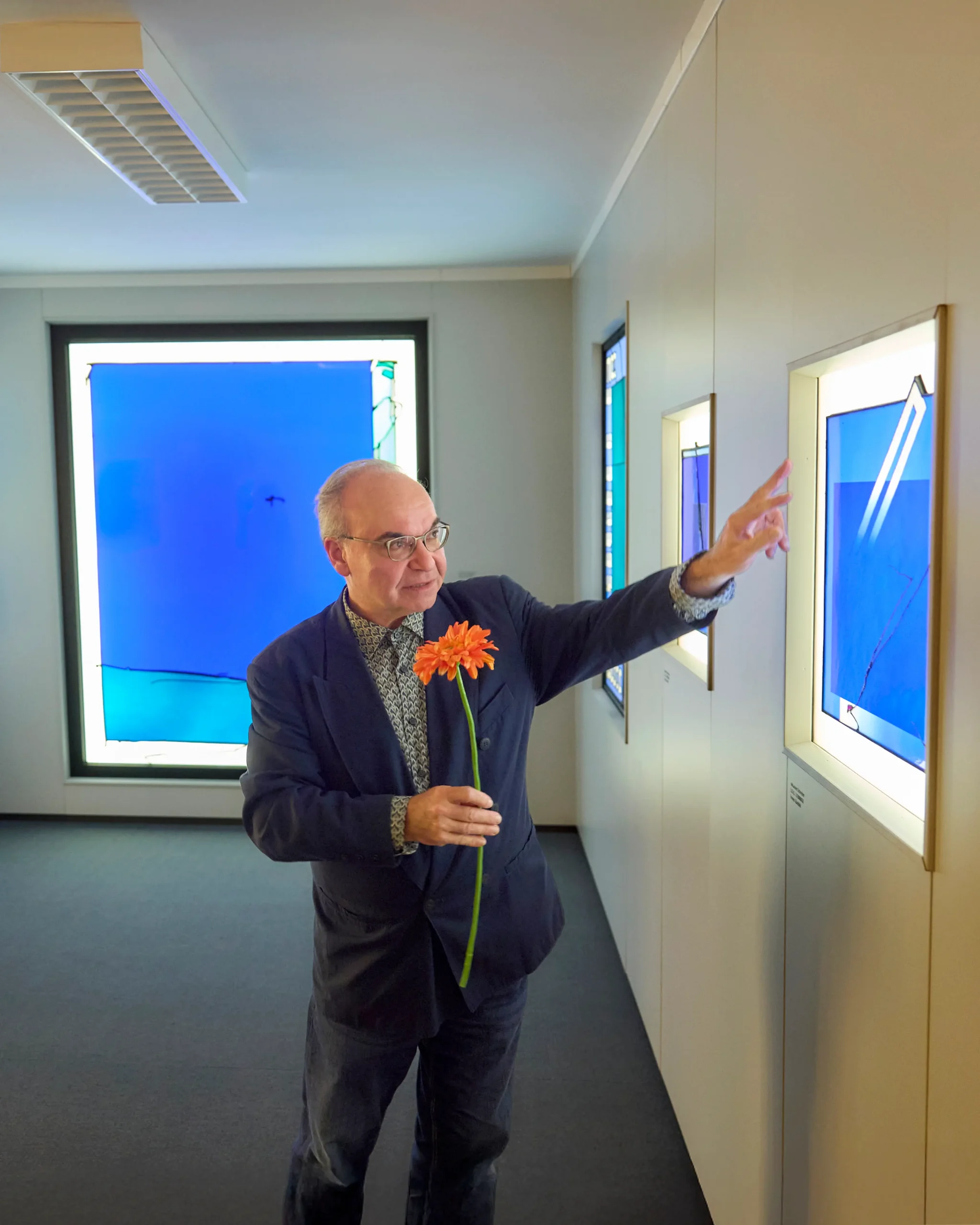 In Langen haben wir eine der wenigen Sammlungen, die sich komplett der Kunstform der zeitgenössischen Glasmalerei widmet – und dazu noch überwiegend einem einzigen Künstler, Johannes Schreiter. Diese Konzentration macht den Ort einzigartig. Auch wenn uns der Platz fehlt, um die komplette Sammlung zu zeigen, präsentieren wir einen wesentlichen Ausschnitt seines Schaffens. Seit rund fünfzehn Jahren ist die Schau ein fester Bestandteil der Stadtkultur und zugleich ein Denkmal für Schreiter.